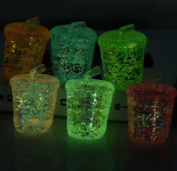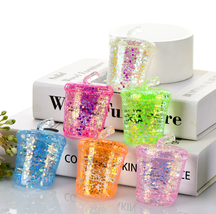 9*5cm Glowing Glitter Fidget Squishy Boba Cup